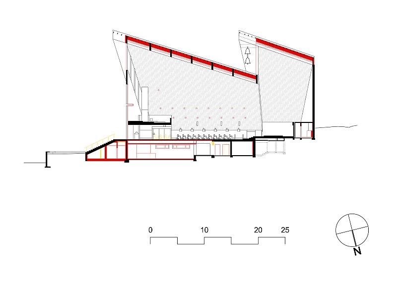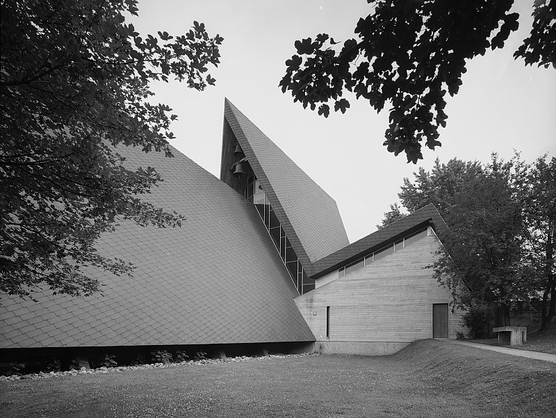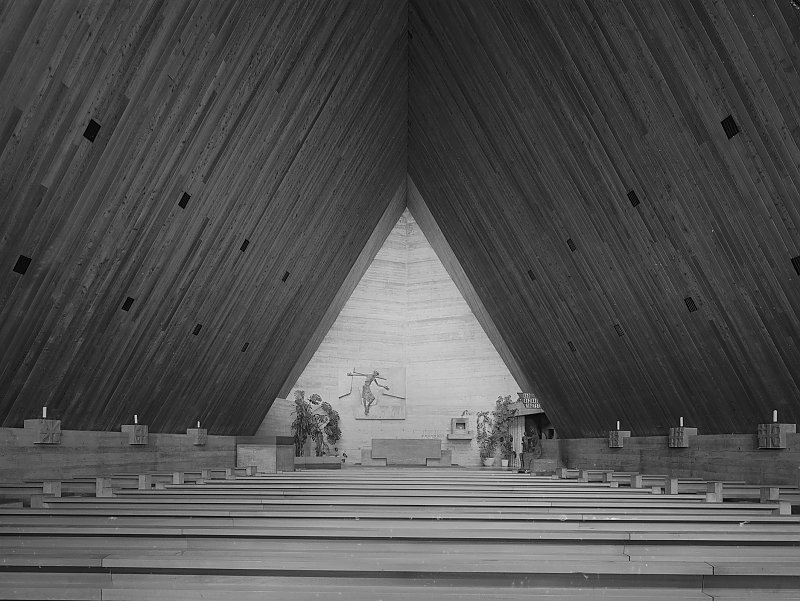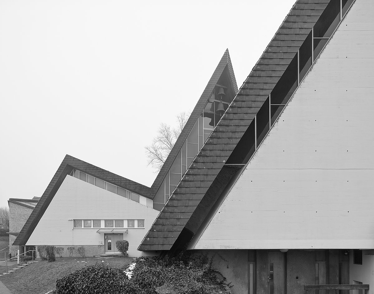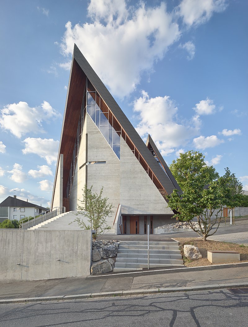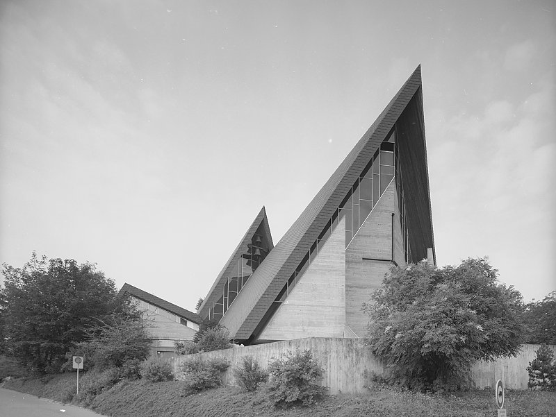 Unser denkmalpflegerisches Konzept für die Erneuerung der Kirche und den Umbau der ehemaligen Pfarrwohnung baut architektonisch und strukturell auf dem starken Ausdruck der Architektursprache mit den verwendeten Materialien Sichtbeton, Holz und Eternitschiefer auf.