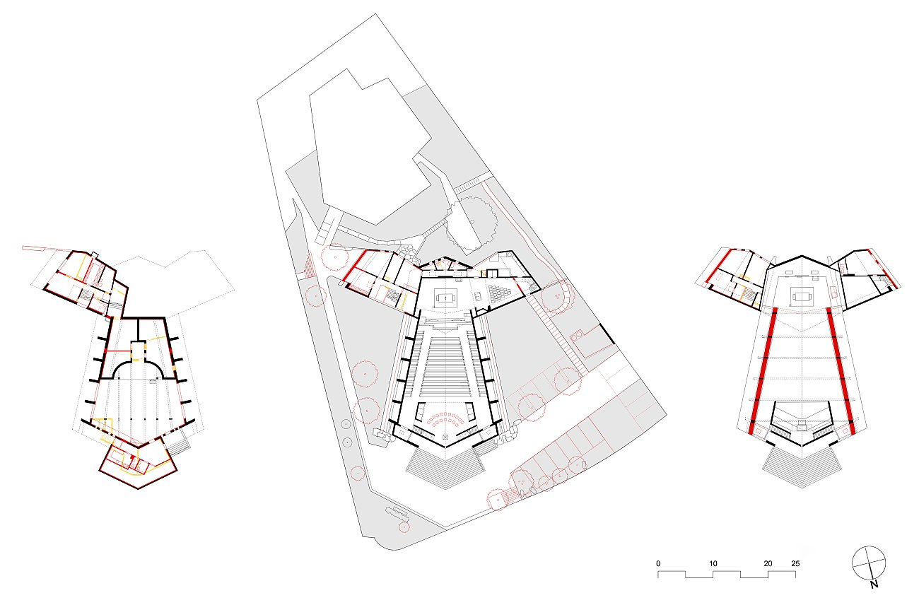 Nutzungen | Kirche und Kapelle, Gemeindesaal und Umnutzung Pfarrwohnungen zu Pfarramt mit Büros, Aufenthalts und Sitzungsräumen |