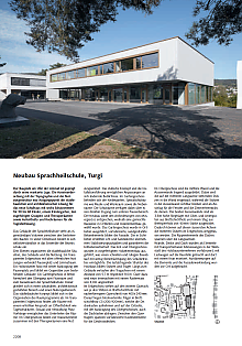 Der Bauplatz am Ufer der Limmat ist geprägt durch die markante topographische Lage der Schulanlage. Die Auseinandersetzung mit der Topographie und der Nutzungsstruktur wird zum Ausgangspunkt der städtebaulichen und architektonischen Lösung. Das Gebäude der Sprachheilschule wird als eigenständiges Volumen zwischen die bestehenden Bauten gesetzt. In seiner Dimension bindet es sich selbstverständlich in das Ensemble der Bezirksschule ein.