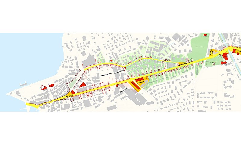 1. der Stärkung des Umfeldes mittels massvoller Verdichtung: durch räumliche Kontrolle und - mit einem einfachem Regelwerk – als Anreize für die Entwicklung privater Grundstücke.