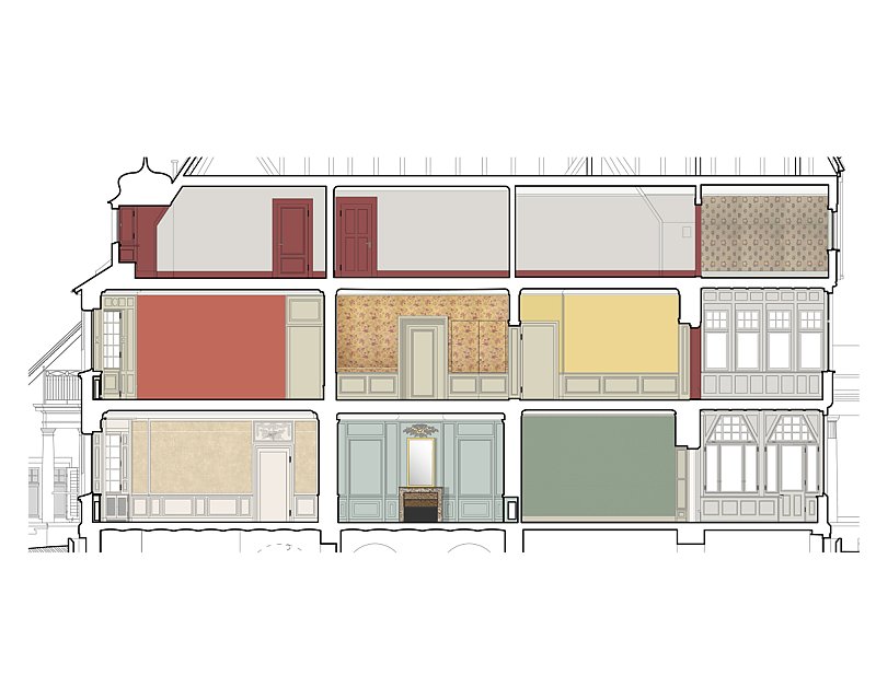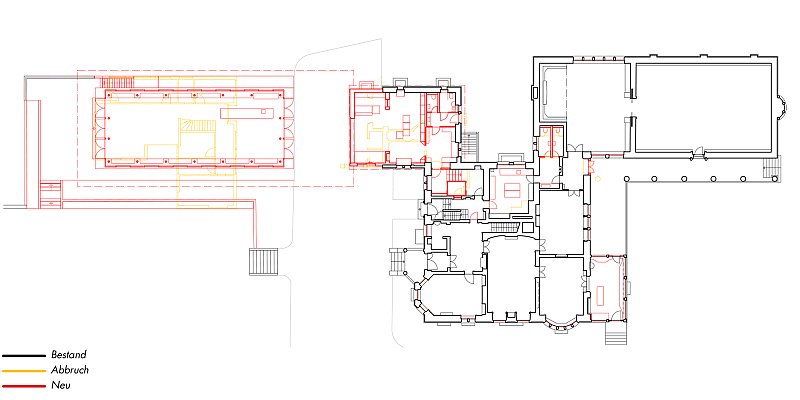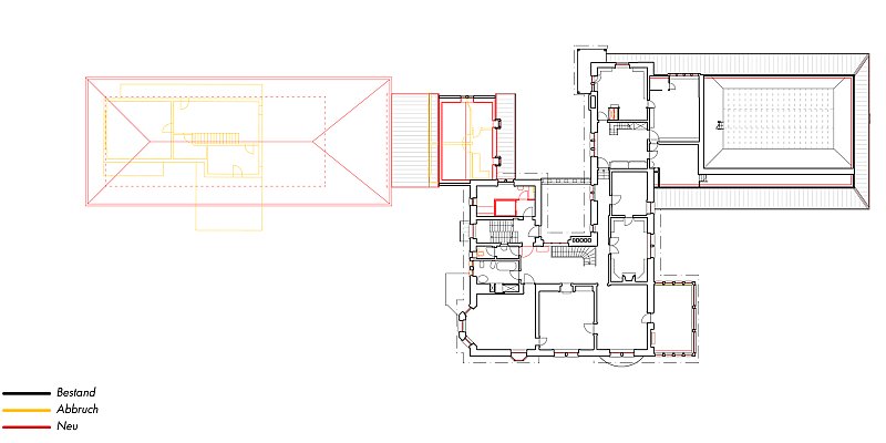 Die Sanierung der Villa erfolgt unter der Maxime eines möglichst geringen Eingriffes in die Substanz um das unverwechselbare Bild der Langmatt als «Gebäude mit unterschiedlichen Atmosphären» zu erhalten.